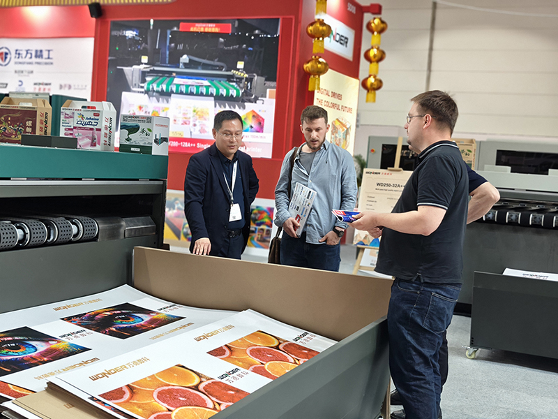 It is worth mentioning that the exquisite printing effect of Wonder equipment and the Chinese style booth design have been praised by many overseas customers, and the audience's evaluation: "Walking into the booth is like visiting the Chinese style art gallery." In particular, the WD250 PRINT MASTER Multi pass UV ink digital inkjet printer printed a variety of cardboard and honeycomb board samples, which have been loved by many visitors. Including visitors, pavilion staff and exhibitors, etc., had come to consult and hope to take home as decoration and hanging pictures. Even on the last day of the exhibition, there were still crowds.